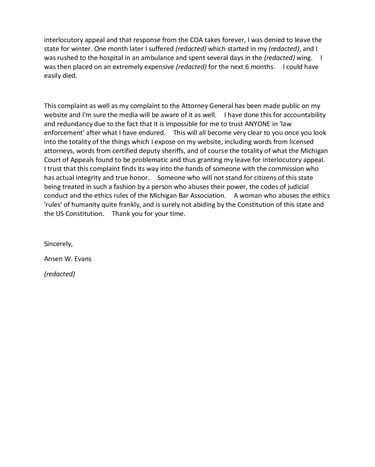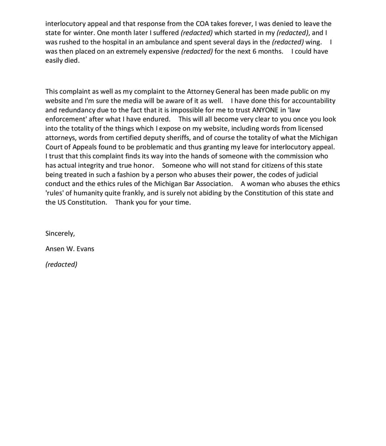 I have received a hand-signed letter from the Executive Director of Judicial Tenure. I have faith an investigation will be opened, and a thank-you to those honorable folks for looking out for YOU.
