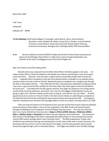 The Michigan Supreme Court, as well as the US DOJ Civil Rights Division and others have been notified of the following: